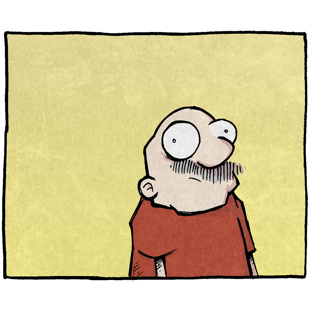 Emanating from his head: Laaaaaame [music note]