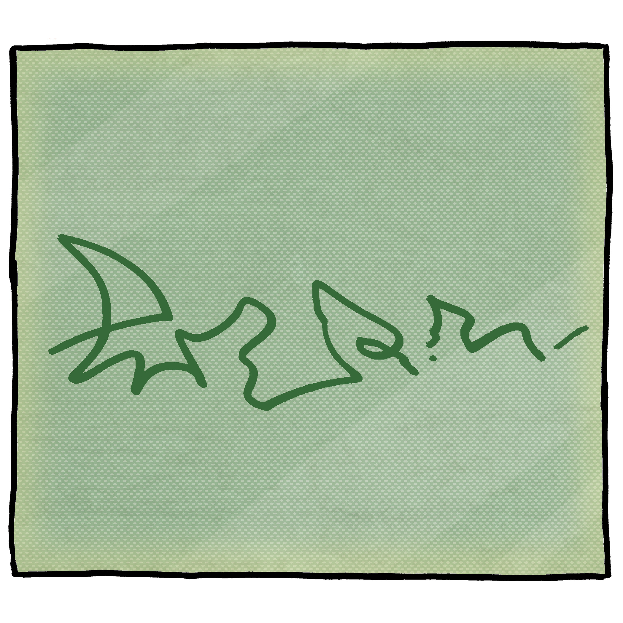 PANEL 2: Close up on a scribble on a screen that does not resemble a name whatsoever.