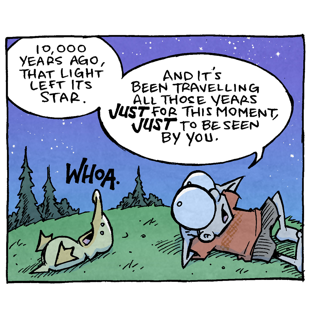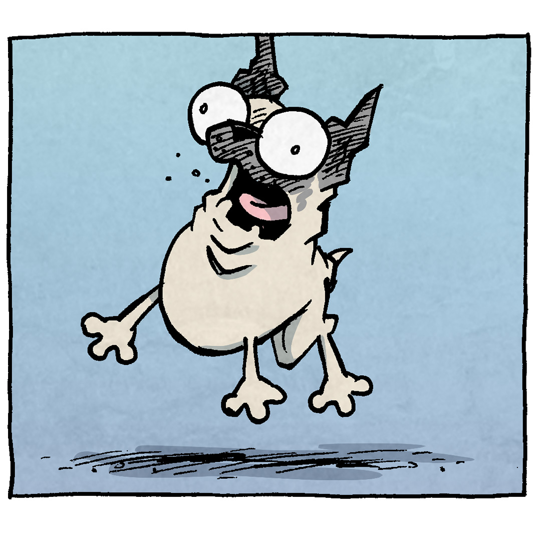 PANEL 6: The “Squigglin” holds his thumb up, now thrilled.