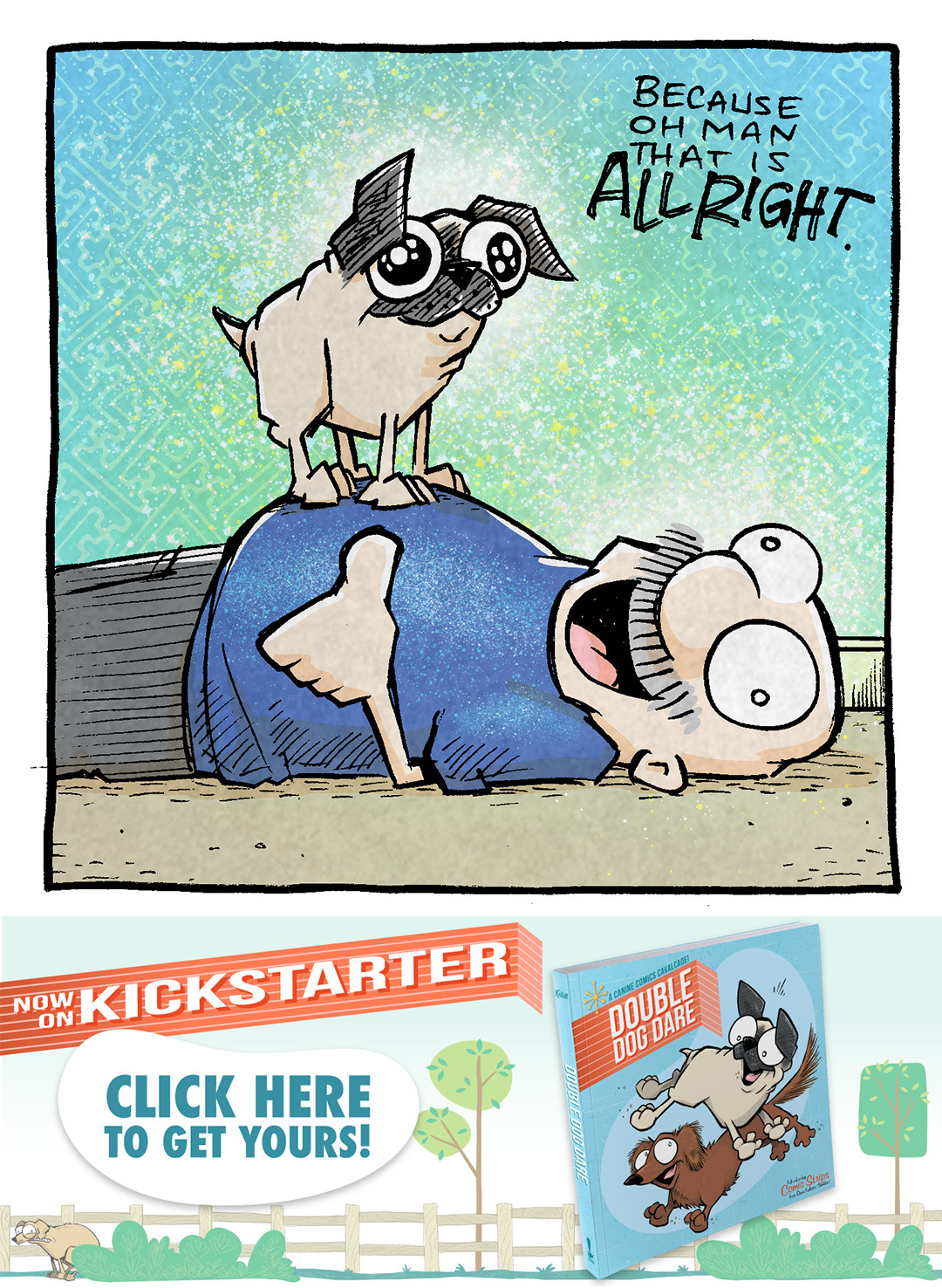 Pals! In celebration of my new book DOUBLE DOG DARE (now on Kickstarter!) here’s one of my favorite dog comics that’s in the book!