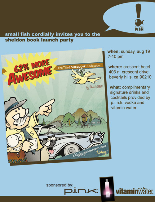 Quick! Write this down! The book launch party for “62% More Awesome” is comin’ up: Sunday, Aug. 19th, from 7-10 PM — with free drinks from