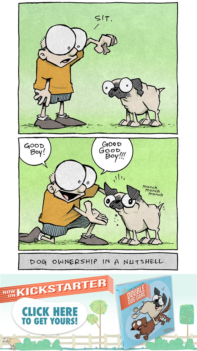 Pals! In celebration of my new book DOUBLE DOG DARE (now on Kickstarter!) here’s one of my favorite dog comics that’s in the book!