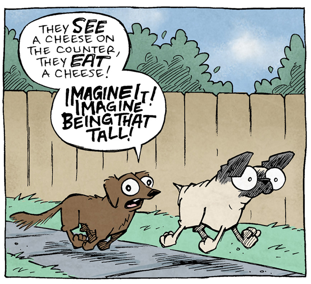 Pals! In celebration of my new book DOUBLE DOG DARE (now on Kickstarter!) here’s one of my favorite dog comics that’s in the book!