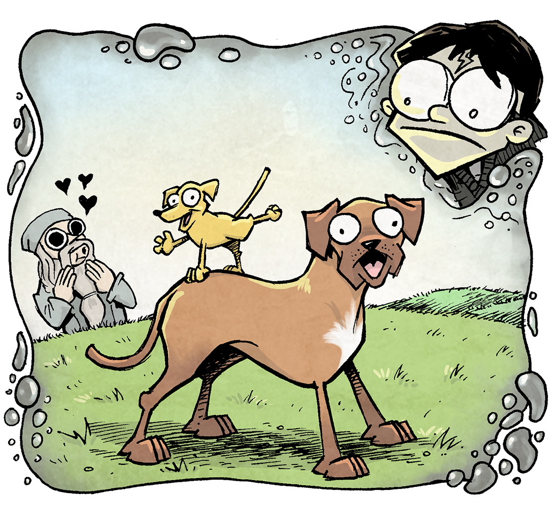 Pals! In celebration of my new book DOUBLE DOG DARE (now on Kickstarter!) here’s one of my favorite dog comics that’s in the book!