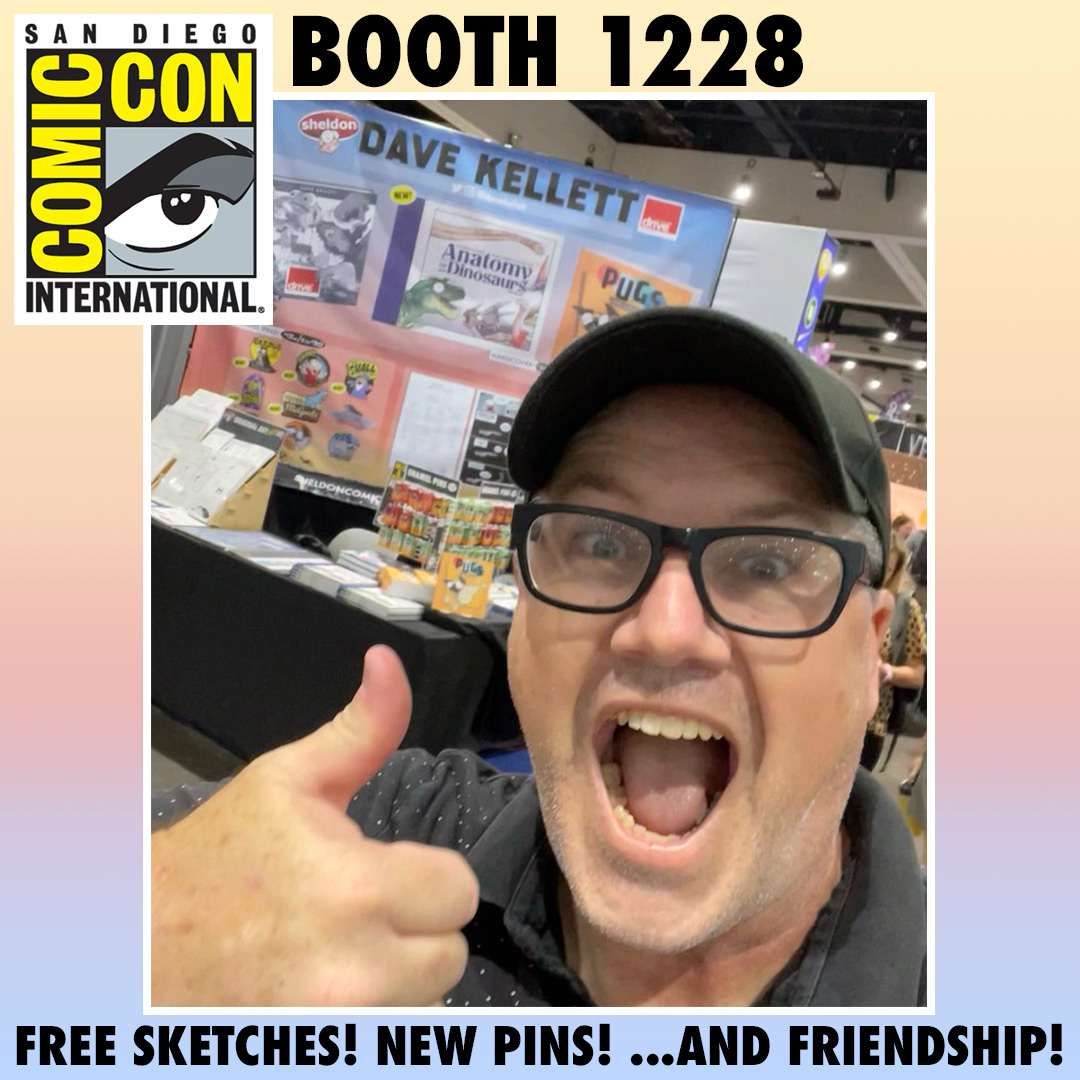 Friends! I'm at San Diego Comic Con THIS WEEK! New pins, free sketches, and the freshest high-fives available! BOOTH 1228! Come by! Look how happy I am to see you!