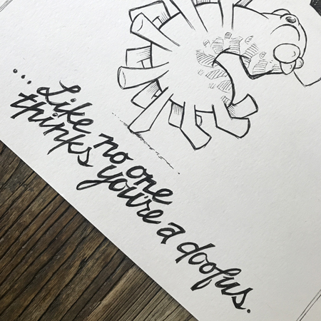Original art fans: I put a Drive illustration up for grabs, if you want it. Starts at 1 penny! “Dance like no one thinks you’re a doofus”