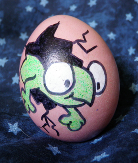 Sheldonista Marjorie Rishel sent in these fantastic Easter eggs she made of Arthur and Flaco, and I had to share ’em with you: