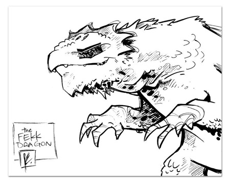 Heads up for DRIVE fans! I’m putting a nifty piece of DRIVE Original Art up for grabs: The first sketch I ever made of the Fekk Dragon! It’s drawn in lightfast, archival inks on acid-free, vellum Bristol stock.