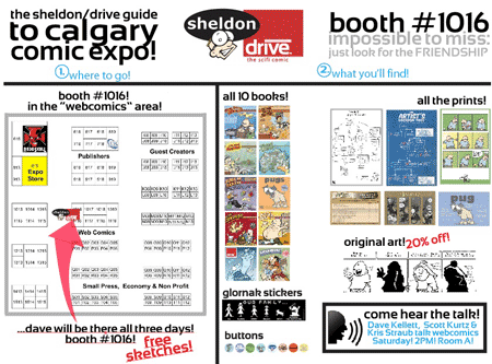 I’m givin’ out free sketches, free high-fives, and lasting, meaningful friendship! I’ll be bringing all the Drive ‘n Sheldon books, and all the prints, of course… aaaaand I’ll have the Original Art of Sheldon strips at 20% off (…just make sure you e-mail me to tell me which specific strips to bring). There is no way you live in Calgary and aren’t coming to this!