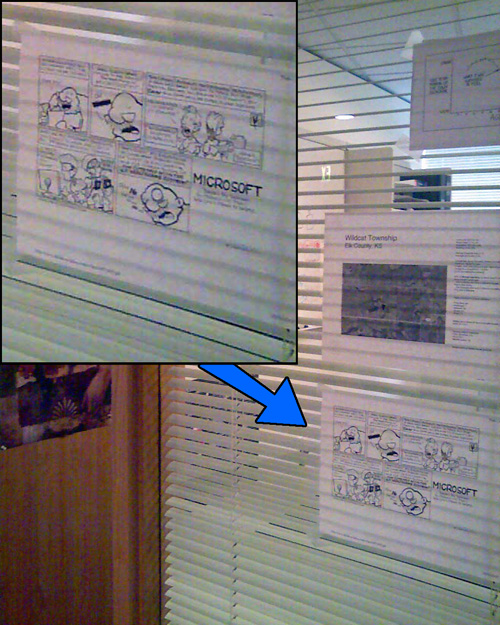 The best e-mail I got was from Jeff, who said he printed out the cartoon to put up in his office, and on walking to the shared printer, saw the same strip already up on someone else’s office. Exhibit A: