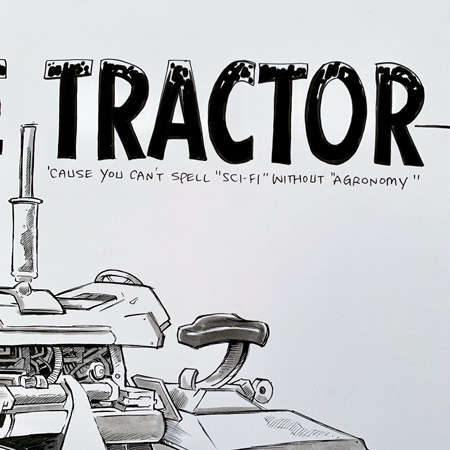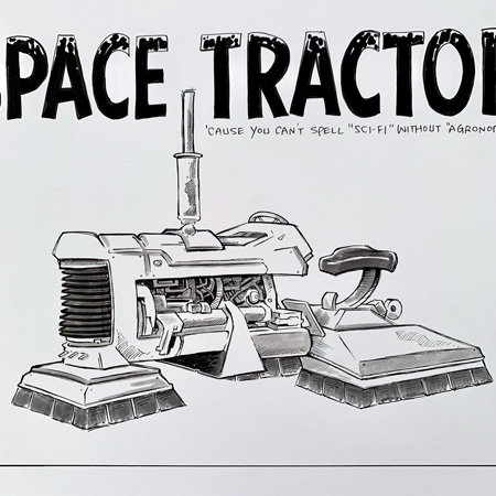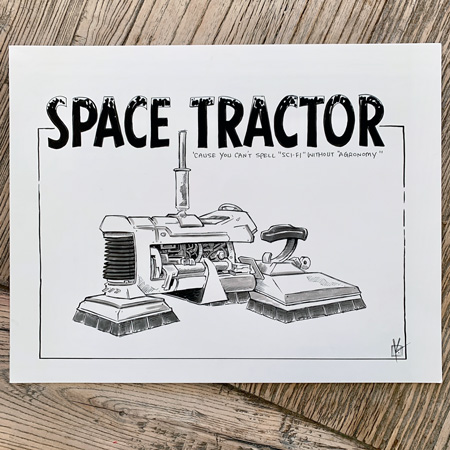 I just put a piece of original art starting at one penny, and I’m a little surprised it’s taken this long to do this one. It’s the fan favorite SPACE TRACTOR! It’s drawn in ink on archival Bristol vellum paper, no art collection is complete without it!