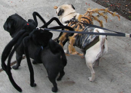 Playing off of Oso’s rejected Halloween costume in this strip, Sheldonista Judy K. writes in to say: “So, what’s wrong with the spider costume? I present Exhibit A…two cute spider pugs. We were on our way to the Seattle Pug-O-Ween and had a very fun day watching pugs in all sorts of great costumes.”