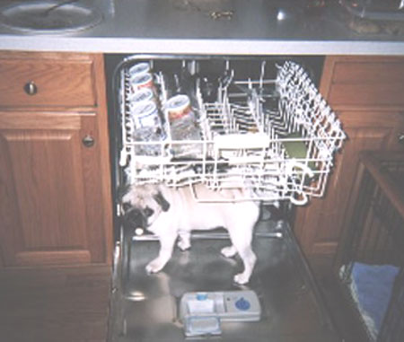 Pugs in Dishwashers = Instant Comedy February 22, 2009 I really don’t need to make a commentary here, do I, on the pic Sheldon reader Sandy H. sent in of her pug…