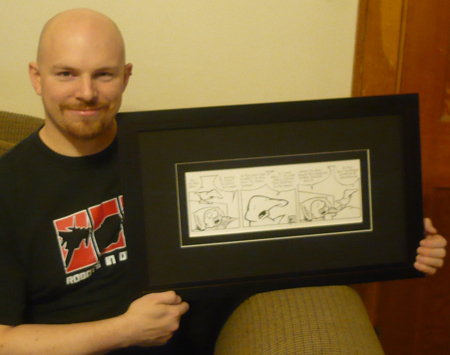 And last but not least, Victor K. sends in this photo of his (wonderfully) framed Sheldon original. It’s one of my favorites…from when Arthur was so hot, he talks like a Bulgarian.