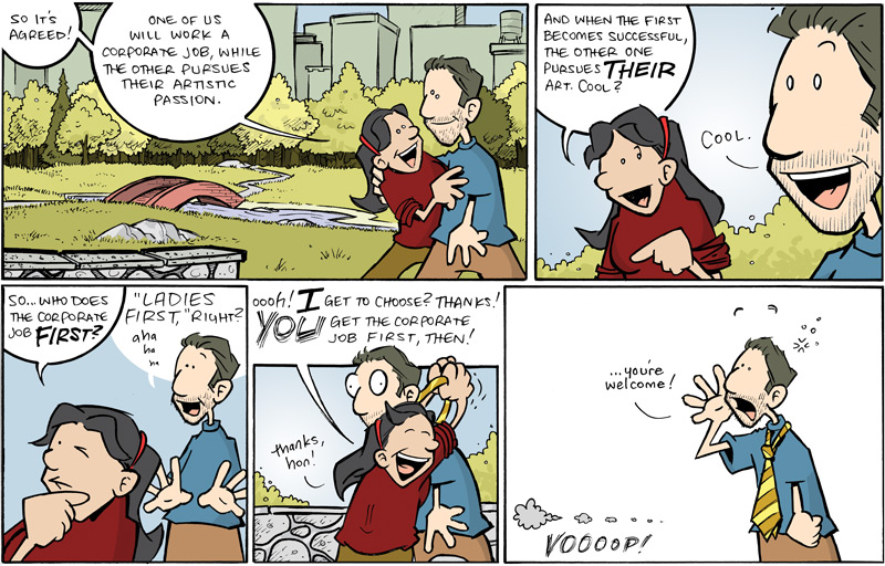 [EDITED TO ADD: For those asking, here’s the English version of the strip they asked us to make to accompany the article.