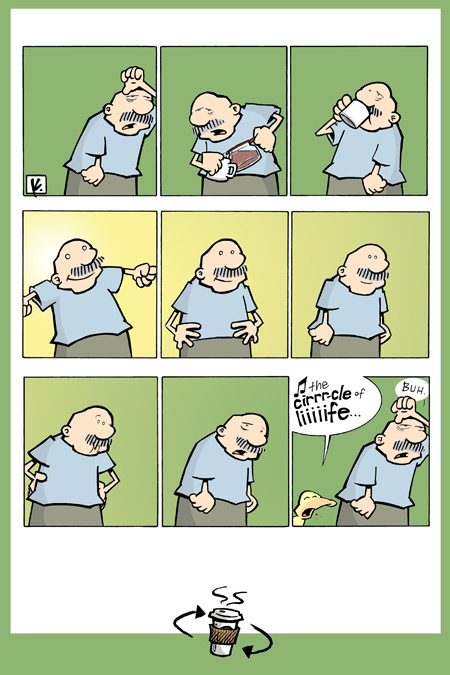 3.) This year, we’ll have five items new to the show: The Literature book, the Drive book, the “Coffee: Circle of Life” print, the “Fantasy Football vs D&D” print, and an exclusive Sheldon/Dante print only available in San Diego to the first 50 takers.
