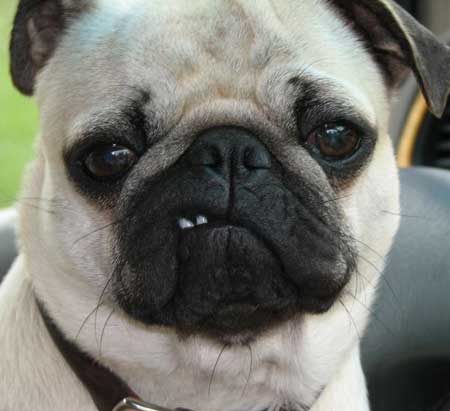 Sheldonista Judy K. sent in this photo after reading her copy of “Pugs”. This pic cracks me up, because, oddly, my brain has put a Jersey accent to the pug, saying “Deeez are not da droidz you’re lookin’ faah.”
